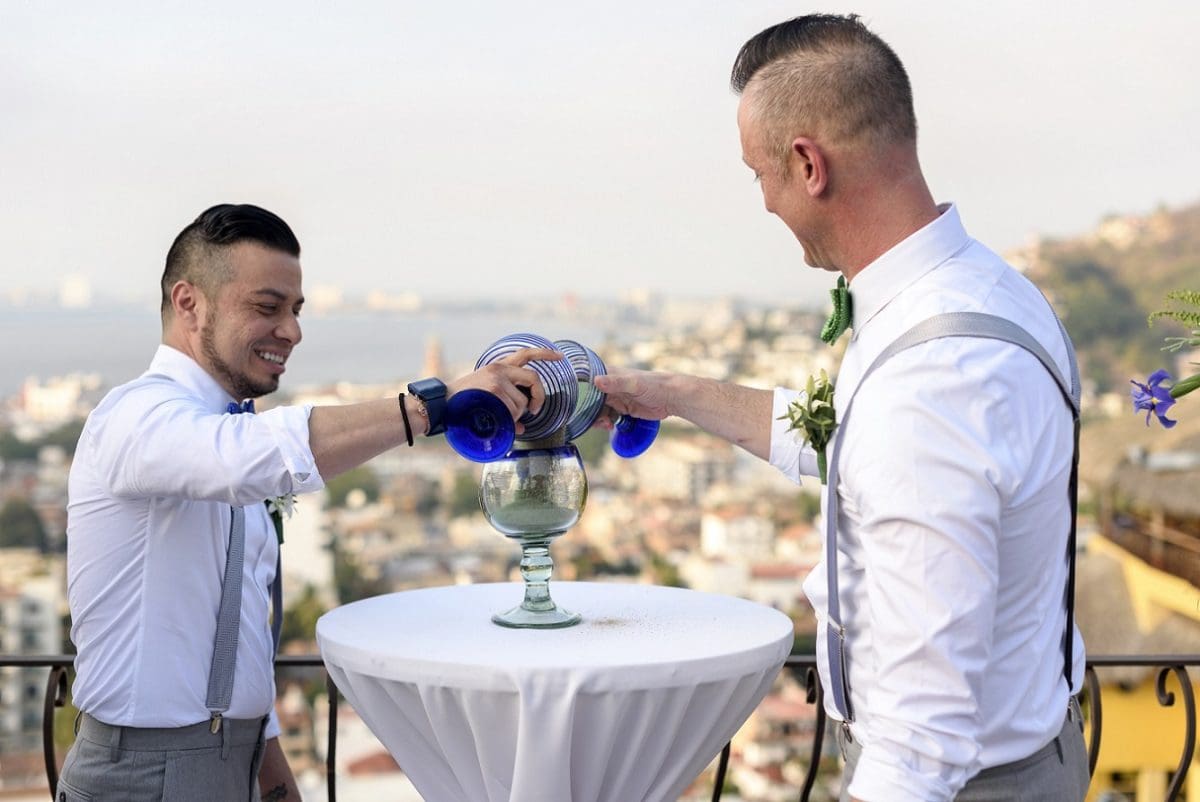 A really fun and charmy Same sex  Vallarta Destination wedding, in one Mexican Villa with a Spectacular  View of Puerto Vallarta .